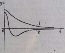 движение маятника становится апериодическим. Выведенная из состояния равновесия система медленно (без колебаний) возвращается в исходное положение. На рис.2 показаны два возможных способа возвращения системы к положению равновесия в зависимости от величины коэффициента затухания.