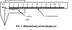 Штангенциркуль, изображенный на рис.3, состоит из стальной миллиметровой линейки