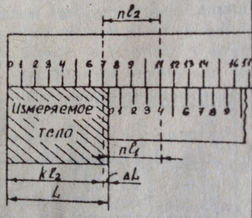 – целое число делений (равное семи на рис.2) основной шкалы, укладывающееся в измеряемой длине