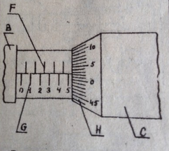 и как видно из рис.1 при совпадении нулевых делений шкал совпадает еще девятое деление основной шкалы и десятое деление нониуса.