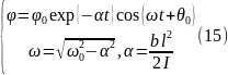 – коэффициент затухания колебаний. Решение этого уравнения отличается от (11) тем, что амплитуда уменьшается во времени по экспоненциальному закону, а частота