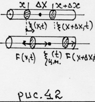 Для этого рассмотрим малый элемент стержня длиной х и массой m, заключенный между поперечными сечениями стержня с координатами х и х + х (рис.42).