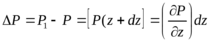(т.е. вдоль направления оси Z). При этом давление может изменяться и в других направлениях, но нас сейчас интересуют изменения давления только вдоль оси Z, поэтому при рассмотрении приращения Р координаты x, y и время t считаются постоянными. В этом случае