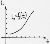 Например, будем кидать с башни камни, для которых выполнено условие представления их моделями материальных точек и для каждого камня будем измерять расстояние L, проходимое им за время t (при этом будем изменять и время). Получим набор расстояний Li и соответствующий набор времен ti Построим график L = f(t) - расстояния как функции времени. График описывается функциональной завсимостью