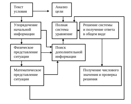 Итак, решение задач - сложная, громоздкая процедура, требующая больших интеллектуальных усилий, большого количества знаний и определенного практического навыка. Решающему необходимо знать понятийный аппарат физики (в понятийный аппарат физики входят физические понятия и величины, физические законы и универсальные принципы). Решающий должен уметь проводить логические операции с использованием понятийного аппарата, при этом насколько хорошо решающий владеет логическими операциями разных уровней сложности, настолько сложные задачи он может потенциально решать.