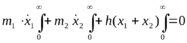 .Пример. Человек, стоящий в лодке, подтягивает вторую лодку за веревку до их соприкосновения и далее удерживает их вместе. Где будут находиться обе лодки, когда их движение в результате трения о воду прекратится? Трение лодок о воду считать пропорциональным их скорости и одинаковым для обеих лодок, массы лодок m1 и m2, начальное расстояние между центрами их массе.