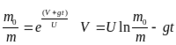 Используя это уравнение, найти соотношение, связывающее скорость V, достигнутую ракетой, с ее массой М в один и тот же момент времени. Масса ракеты на старте равна М0 , а скорость газовой струи U постоянна и направлена против ее движения.