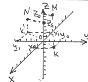 з точки М опускают перпендикуляры на ось OZ (Z0) и плоскость XOY - точка К. Из точки К опускают перпендикуляры на оси ОХ (Х0 ) и OY (Y0 ).