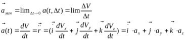 Математический эквивалент среднего ускорения точки в данной системе отсчета на интервале времени ( t, t+