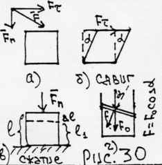 б) нормальную, направленную перпендикулярно поверхности и создающую деформацию сжатия (FН). (Рис.30а,б,в).