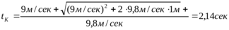 Дано: h = 1 м, V0 =9м/сек, g = 9,8 м/сек2