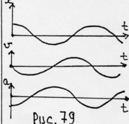 1.Пример. Построить графики зависимости от времени (х) смещения, (V) скорости и (а) ускорения при простом гармоническом колебании. Найти соотношение между амплитудами смещения скорости и ускорения.