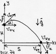 , направленной под углом к горизонту. Определить дальность полета камня и скорость его в момент падения на землю