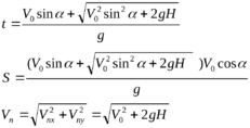 Искомая дальность S равна координате х в момент падения, т.е. S = xn при t = tn где tn - время полета камня. Тогда S = V0n cos