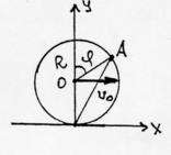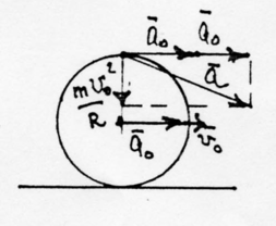 4.Пример. Колесо радиуса R катится без скольжения по горизонтальной дороге со скоростью V0. Найти горизонтальную компоненту Vx линейной скорости движения произвольной точки на ободе колеса, вертикальную компоненту Vy этой скорости и модуль полной скорости для этой же точки. Найти значение угла между вектором полной скорости точек на ободе колеса и направлением поступательного движения его оси.