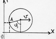 Найти координаты х и y произвольной точки А на ободе колеса, выразив их как функции времени t или угла поворота колеса полагая, что при t = 0 = 0 x = 0 y = 0