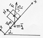 , направленная под углом к наклонной плоскости. Коэффициент трения . Найти ускорение тела.(рис.88)