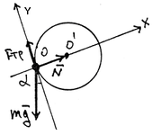 Отсюда следует, что сила натяжения нити по всей ее длине по величине одинакова. Используя это условие и вводя систему координат как показано на рисунке, получим