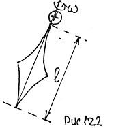 .Пример. Возьмем тело А, которое может свободно вращаться вокруг горизонтальной оси О, перпендикулярной к чертежу. Расстояние от центра масс до оси равно а. Тогда при повороте тела от положения равновесия на угол возникнет возвращающий момент сил тяжести, равный