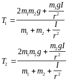 Натяжение нити будет различным для правого (Т2) и левого (Т1) отрезков нити. Уравнение поступательного движения подвешенных грузов