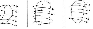 4.Вопрос. На рисунке изображены линии векторного поля скоростей жидкости. Определить знак потока Ф вектора скорости через замкнутую поверхность S в заданных случаях.