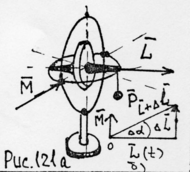 , это значит, что при действии груза ось гироскопа начнет вращаться в плоскости X0Y. Так как для малых углов Рис.121 б
