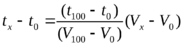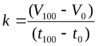 В этом случае в качестве рабочего тела берут воду и приписывают тающему при атмосферном давлении льду температуру 0 оС, а кипящей при нормальном атмосферном давлении воде - температуру 100 оС. При этом постоянная масса воды имеет при 0 оС объём V0, при 100оС - V100, при хоС - Vх. Если между изменением объёма и изменением температуры существует линейная зависимость (устанавливаемая экспериментально), то имеет место соотношение