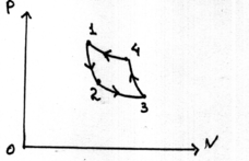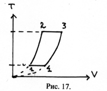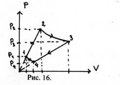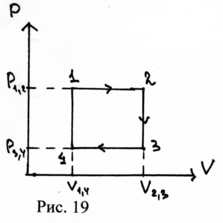 (Рис.19). Температура в состоянии 2 равна Т2, а в состоянии 4 - Т4. Определить работу цикла на отдельных участках цикла, к.п.д. машины, работающей по такому циклу.