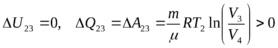 (из графика). При переходе газа из состояния (1) в состояние (3) ((P2V2) - точки 2 и 3 лежат на одной изотерме) – выполняются соотношения Q2 = U2 + A2. ,