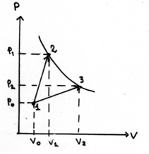 | Рис. 18 | На PV-диаграмме процессы изображаются прямыми линиями 1-3 и 1-2. Определить, при каком из процессов газу сообщается большее количество теплоты. Согласно I началу термодинами-ки, при переходе газа из состояния 1 (P0V0) в состояние 2 (P1V1) количество теплоты Q1, полученное газом Q1 = U1 + A1. |