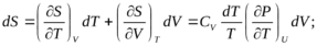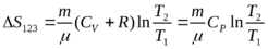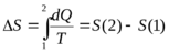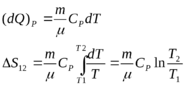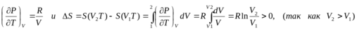 В качестве обратимого процесса перехода из состояния 1 в состояние 2 в данном случае целесообразно выбрать изотермический процесс. Изменение энтропии в этом случае с учётом термодинамических соотношений и учётом того, что энтропия - функция состояния, т.е. её приращение является полным дифференциалом, равно