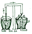 Для проведения соответствующего эксперимента надо было изолировать один магнитный полюс от другого. Фарадей придумал прибор, который позволял это сделать. На рис. 11 изображена схема прибора Фарадея, позволяющая одновременно демонстрировать действие тока на магнитный полюс и действие магнитного полюса на ток. В этом приборе имеются два сосуда с ртутью. Цепь прибора указана стрелами.