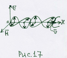 (рис. 17). Энергия волны складывается из энергии электрического и магнитного полей. Мгновенные значения объёмной плотности энергии электромагнитного поля