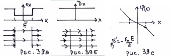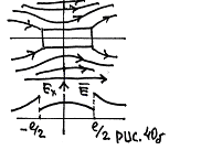 40. Длинная тонкая диэлектрическая палочка помещена в однородное электрическое поле, как показано на рис. 40а. Изобразить качественную картину линий поля и график зависимости