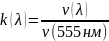 Применение этой формулы к излучению эталона, с помощью которого определяется кандела, привела к следующему результату: ν (555 нм) = 683 лм/вт.