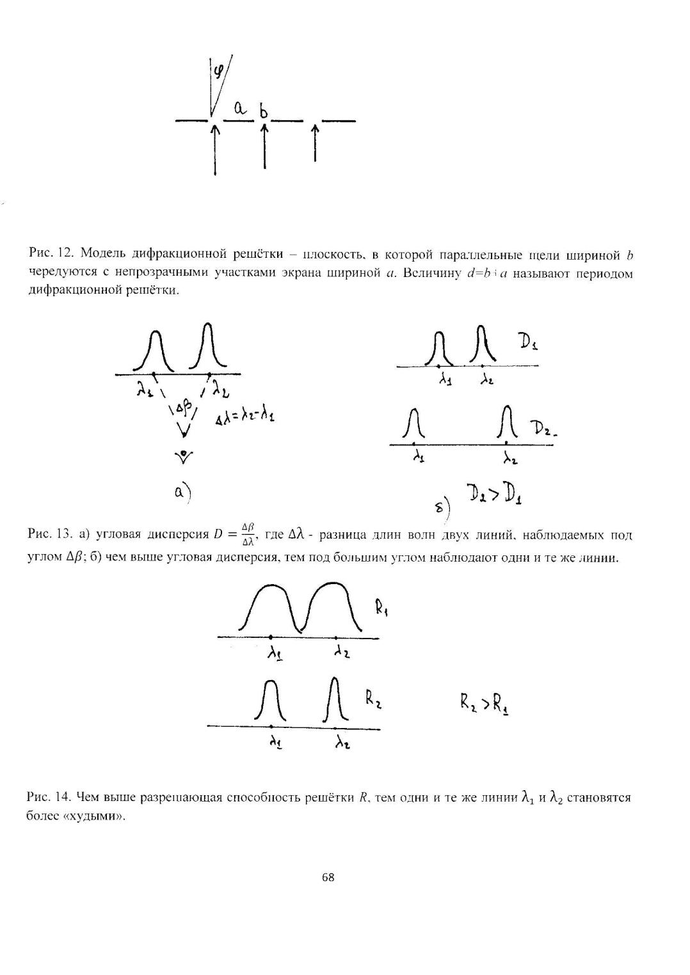 , где N – число штрихов (рис. 13, б). В видимой области спектра дифракционные решётки изготавливают с числом штрихов на миллиметр от 300 до 1200.