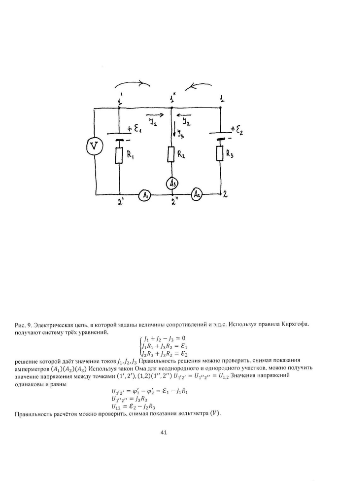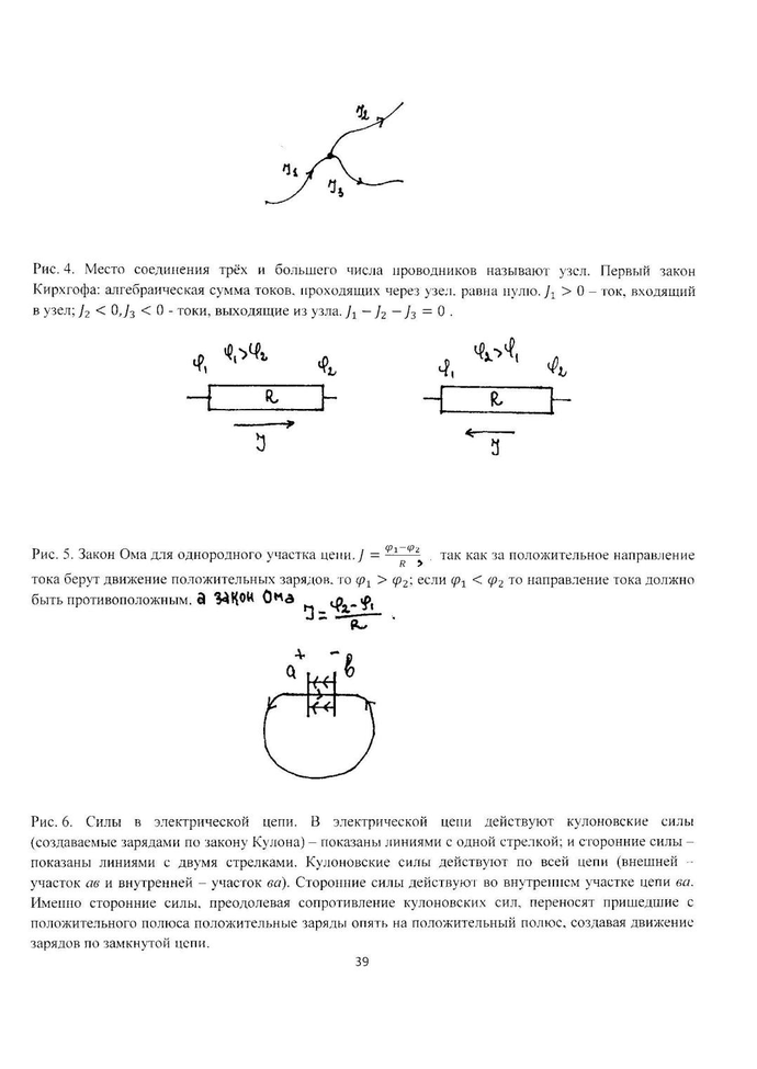 (рис. 4). В противном случае имеет место накопление электрических зарядов. Правило (1) прохождения постоянных токов через узел называют первым правилом Кирхгофа.
