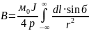 направлен от элемента тока к точке наблюдения. Величина магнитной индукции