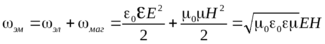 ‑ абсолютный показатель преломления (см. Оптику). Энергия волна складывается из энергии электрического и магнитного поля. Мгновенное значение плотности объёмной энергии