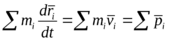 ‑ радиусы вектора материальных точек, входящих в сумму; назовём точку центр-масс. Продифференцируем левую и правую часть