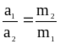 ускорения тел обратно пропорциональны их массам: