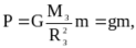 откуда видно направление силы ( она направлена вдоль прямой, соединяющей взаимодействующие массы). Модуль силы притяжения P тела массы m к Земле , которую называют силой тяжести можно записать так: