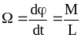 ся на угол dj так, что изменение момента импульса dL = L1 - L2 = Ldj. В то же время из уравнения ( 4-8 ) следует dL = M dt , или Ldj = M dt , откуда можно придти к выводу, что гироскоп начинает вращаться в плоскости, перпендикулярной плоскости рисунка с частотой, которая называется частотой прецессии.