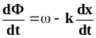 называется длиной волны. Аргумент синуса в уравнении ( 9-7 ) определяет фазу волны F (x,t). Поверхность, соединяющая все точки, фазы которых одинаковы, называется волновой поверхностью или фронтом волны. Если волна плоская, то фронтом волны является плоская поверхность. Волна, распространяющаяся во все стороны от точечного источника, называется сферической; очевидно, что для такой волны волновая поверхность представляет собой сферу. Если на какой-либо поверхности фаза постоянна, т.е. Ф(x,t) = const , скорость перемещения координаты, для которой фаза постоянна можно определить дифференцируя условие постоянства фазы:
