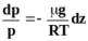 уравнение состояния газа в предположении о постоянстве температуры по всей высоте выделенного вертикального столба: