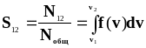 чаются молекулы по скоростям, или какая относительная доля молекул имеет определенную скорость ( в заданных пределах). При этом бессмысленно говорить о том, какое конкретное значение скорости имеет та или иная молекула, т.к. в газе каждую секунду происходит 5·109 столкновений, в результате которых молекулы постоянно меняют значение своей скорости. Если выбирать интервал скоростей достаточно малым, то число молекул, скорость которых лежит в этом интервале, определяется тремя факторами: общим числом молекул газа Nобщ, величиной заданного интервала скоростей dv и третьим параметром, характеризующим распределение молекул по скоростям f(v), т.е. относительной долей молекул со значениями скоростей в интересующем нас интервале dv: