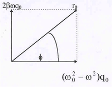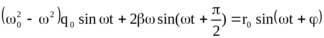 | Рис.31.Графическое решение дифференциального уравнения. | Обращаясь к векторному представлению колебаний, нетрудно заметить, что вектор r0 , стоящий в правой части уравнения является суммой двух других векто-ров, представляющих колебания в левой части. Из рис.31 по теореме Пифагора откуда |