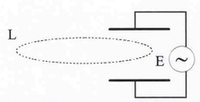 | Рис.35. К выводу теоремы о полном токе. | Это значит, что любое магнитное поле порождается то-ками. При рассмотрении переменного тока в цепи, содер-жащей конденсатор, можно было заметить, что линии тока прерываются на его пластинах - в пространстве между пластинами ток отсутствует (см. рис.35). Тогда оказывается, что выбирая контур интегрирования L внут-ри этой области, можно нарушить теорему о циркуляции. Максвелл предоложил, что теорема о циркуляции векто- |
