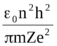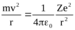 где сила, стоящая в правой части этого уравнения, представляет собой кулоновскую силу взаимодействия двух зарядов: е и Ze, a величина v2 /r характеризует центростремительное ускорение электрона. Сокращая знаменатели обеих частей этого уравнения и используя выражение второго постулата Бора, получаем систему из двух уравнений, где неизвестными являются скорость v и радиус орбиты r :