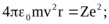 Пусть Ze - заряд ядра атома, вокруг которого вращается один электрон массы m. Радиус орбиты обозначим г, а скорость электрона на орбите - v. Тогда уравнение движения электрона можно записать в следующем виде: